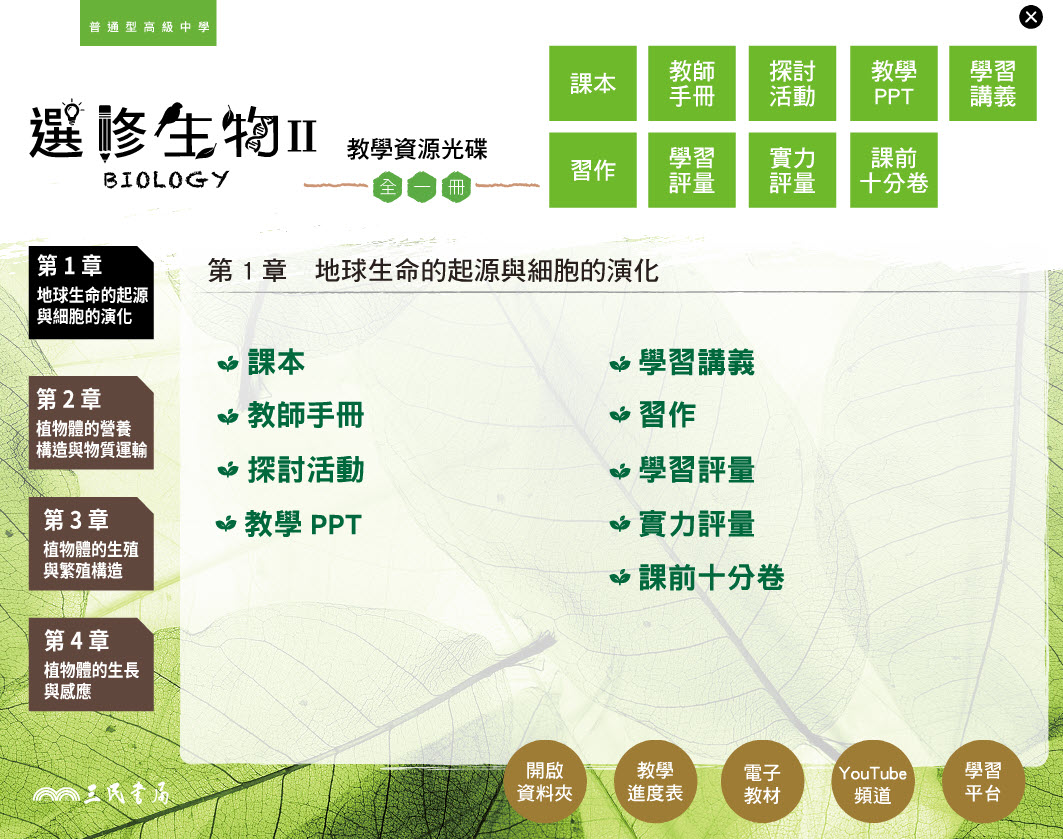 112學年 高中 三民版 選修生物(II) 教學光碟